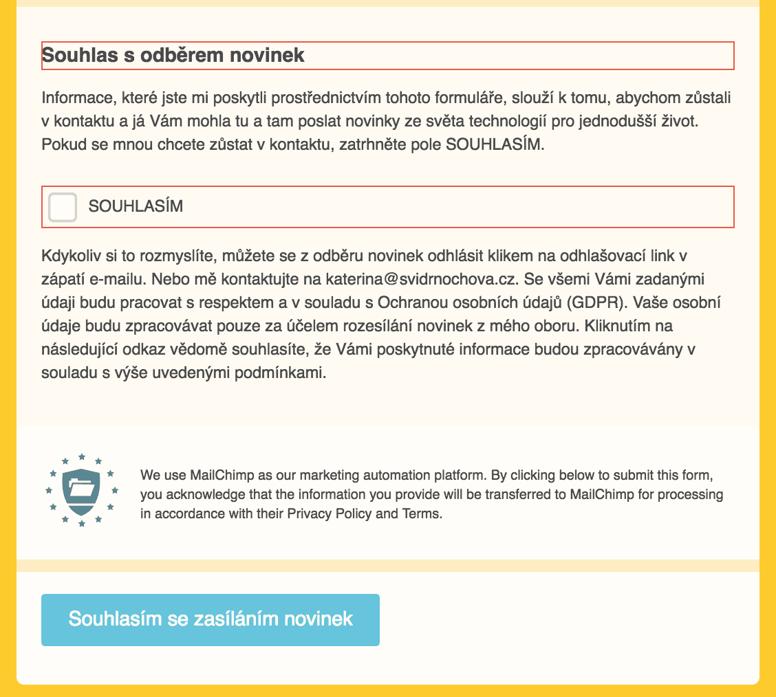 Mailchimp, nástroj pro rozesílání hromadných e-mailů a newsletterů, vzal obecné nařízení GDPR více než poctivě. Nabízí několik funkcí, které vám po jejich nastavení ošetří získávání informovaných souhlasů k odběru newsletteru a to i zpětně u kontaktů, které už v databázi máte.