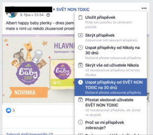 10. Zbavte se balastu na zdi. Vypněte reklamy (klikněte na 3 tečky a vyberte Skrýt reklamu). Uspěte příspěvky konkrétních lidí nebo konkrétních skupin, abyste neměli profil zahlcený kdejakou Máňou, která něco poptává, nabízí nebo řeší.