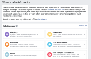 4. Věnujte pozornost položce Vaše informace na Facebooku – Přístup k vašim informacím. Rozklikněte ji a mrkněte, co kde s kým sdílíte, co jste kdy zveřejnili, zprávy v Messengeru. Vše máte na jednom místě.