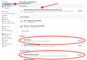 - Změňte si heslo. Nastavte si dvoufázové ověření – kdyby se někdo snažil nabourat do vašeho profilu z jiného zařízení, Facebook to pozná a zašle vám informaci. Nastavte si 3 až 5 přátel, kteří vám v případě ztráty přístupu k účtu pomohou dostat se do něj zpátky. Věřte mi, není to zbytečné. V poslední době se množí ataky na soukromé profily i v Česku.